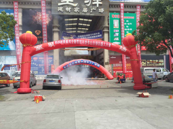 2015年8月7日上午10時18分,位于上海金山區(qū)室驛建材家居廣場的奧邦全屋集成頂金山旗艦店隆重開業(yè)。漂亮精致的花形拱門,歡慶的禮炮聲預(yù)示著開業(yè)的火爆氣氛,每一處景象都彰顯著現(xiàn)場濃烈的喜慶氛圍。
