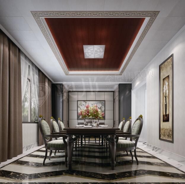 餐廳,作為招待客人的重要場所之一,大到整體布局,小到軟裝搭配,都是家裝設計中不可忽略的一筆。那么餐廳的吊頂,不僅會影響餐廳的布局,還會在整個設計風格上起到奠定作用。下面幾款奧邦全屋集成頂的餐廳吊頂裝修效果圖,獨特的風格設計,為你的餐廳增添一抹亮麗的色彩,讓你享受舌尖上的美味。